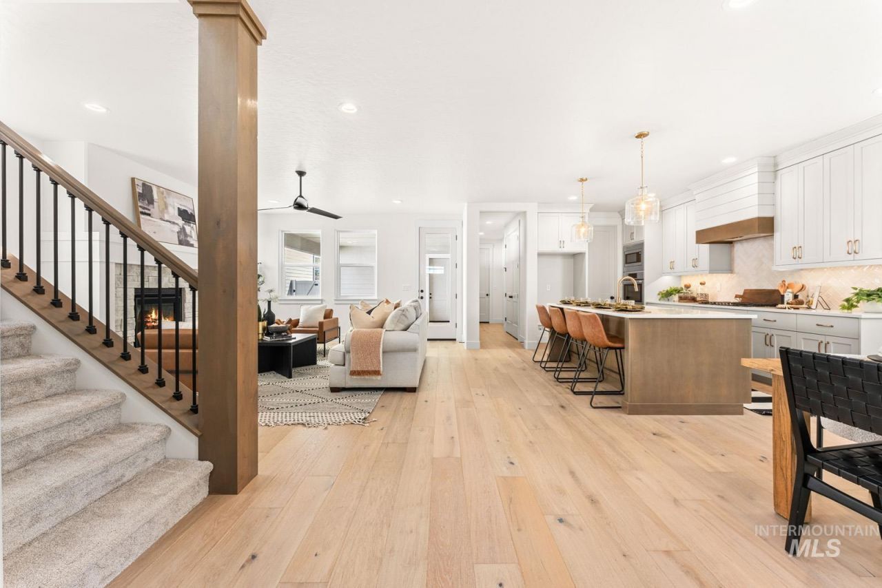 Enjoy exclusive lock and leave living at one of the most affordable price points in Dry Creek Ranch. This low maintenance home INCLUDES LANDSCAPE MAINTENANCE & is conveniently located near the 5-acre community center which has a pool, gym, clubhouse, & sport courts. Embark on adventure with hiking/biking trails minutes from your doorstep or take a swing at one of the nearby golf courses. Enter through the covered porch into an open floorplan centered around a spacious great room with a platform fireplace and views of the covered patio. Just steps away, the chefs kitchen is designed for entertaining and features a large island, generous counterspace, and a walk-in pantry with ample storage. Beyond the glass double-doored office, the staircase leads to the second level, where youll find a cozy loft flexible to your needs and the private primary suite. The primary showcases a vaulted ceiling and a luxurious bath with dual sinks, a tiled shower, and a massive walk-in closet. Completing the second level are two additional bedrooms. The 3-car garage offers plenty of space to store your vehicles and toys. Peaceful low maintenance living means you can explore the best of what Idaho has to offer. Proximity to highway 55 allows for short day trips or longer vacations to hot springs, ski resorts, lakes, mountains, and more. Home is move in ready.